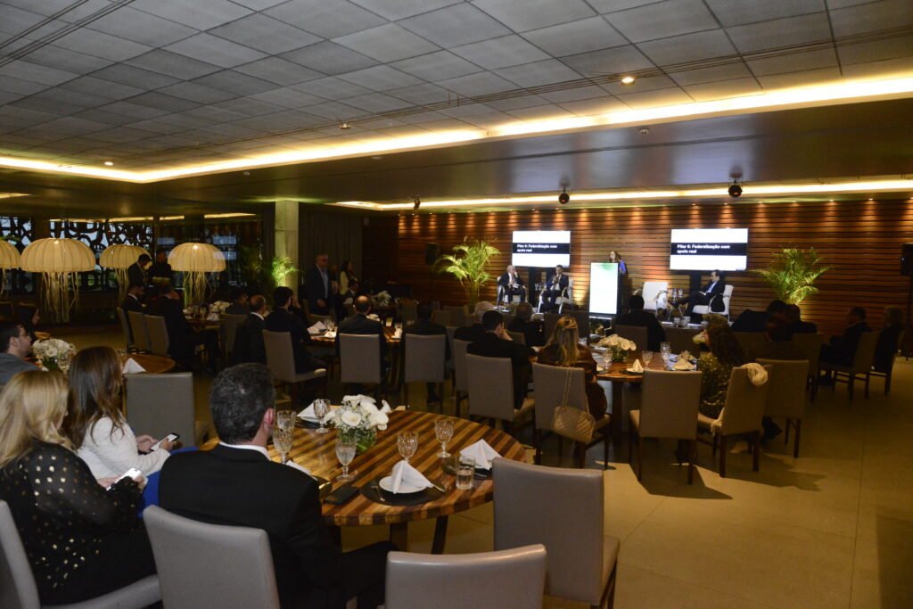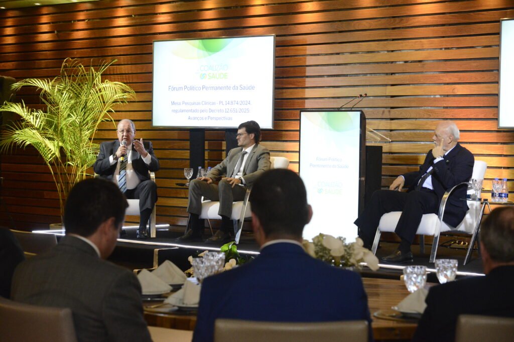 Durante o jantar, foram discutidos os desafios da interoperabilidade na saúde, com destaque para a implantação do prontuário eletrônico unificado, além dos avanços e próximos passos da nova Lei de Pesquisa Clínica no Brasil, recentemente sancionada.