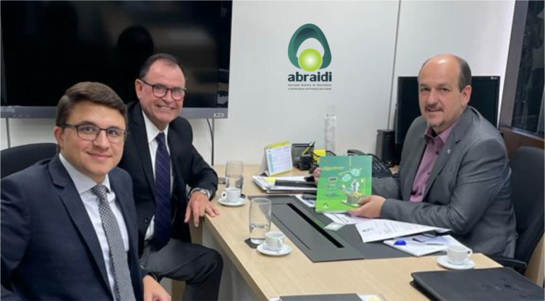 O presidente da Associação Brasileira de Importadores e Distribuidores de Produtos para Saúde e o diretor executivo, Sérgio Rocha e Bruno Bezerra, estiveram em 8