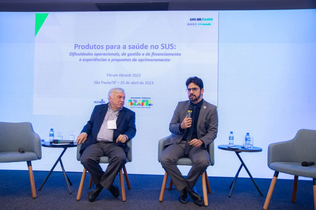 A segunda mesa de debates abordou o fornecimento de produtos para saúde ao SUS com discussões sobre os problemas de financiamento, dificuldades operacionais e propostas de melhoria com moderação do diretor técnico da ABRAIDI, Sérgio Madeira. Participaram o diretor de Projetos da Secretaria de Atenção Especializada em Saúde do Ministério da Saúde – SAES/MS, Aristides de Oliveira Neto e o Deputado Federal, Pedro Westphalen (PP/RS).