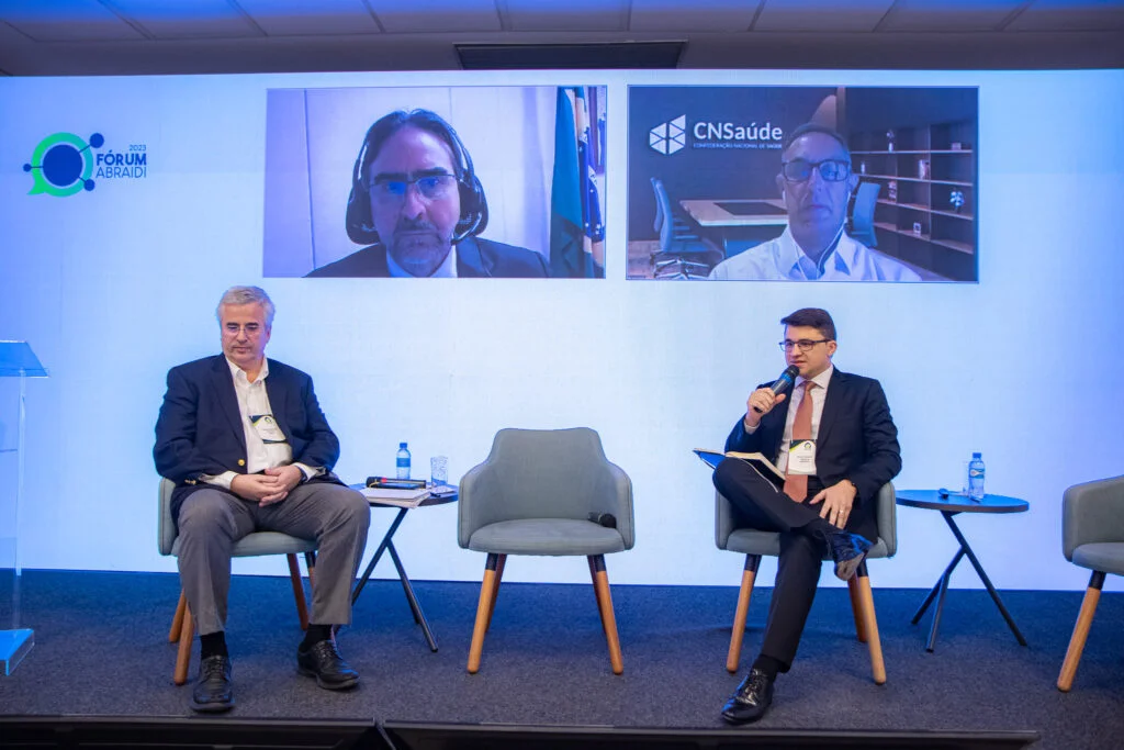 A Reforma Tributária e seus efeitos no setor da saúde foi a temática do Painel 3 do Fórum que teve a moderação do diretor executivo Bruno Bezerra. Participaram o diretor executivo da Confederação Nacional de Saúde – CNSaúde, Bruno Sobral; secretário extraordinário da Reforma Tributária do Ministério da Fazenda, Bernard Appy; e o presidente da Aliança Brasileira da Indústria Inovadora em Saúde – ABIIS, Carlos Eduardo Gouvêa.
